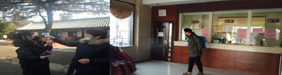景區(qū)關(guān)閉期間,各部門實(shí)行輪流值班制度,公司領(lǐng)導(dǎo)每天對(duì)景區(qū)各部位進(jìn)行安全巡視并檢查消殺工作,值班人員及時(shí)將消殺、防護(hù)情況分享至工作群內(nèi),確保交接班順暢。辦公區(qū)域每天都有工作人員,進(jìn)行日常消殺。對(duì)進(jìn)出景區(qū)的工作人員,做到每次出入必監(jiān)測(cè)體溫并做好出入情況記錄,及時(shí)消毒。