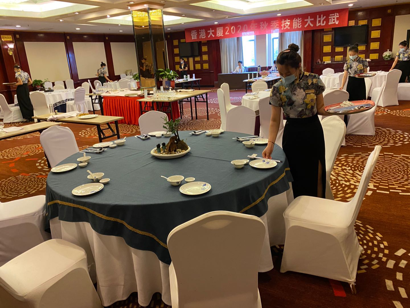 根據(jù)2020年技能大賽方案總要求,大廈于9月25日-9月29日完成了各部門、各項目的技能大比武。本次比賽項目共涉及一線崗位8個、后勤崗位4個,分別有餐飲宴會創(chuàng)意擺臺、客房中式鋪床和創(chuàng)意夜床、烹飪基本技能及創(chuàng)新菜品、創(chuàng)意面點及基本技能,前廳預(yù)訂、接待、收銀服務(wù)技能模擬考核、工程維修技能、保安消防技能等,考核項目全面,內(nèi)容實用。