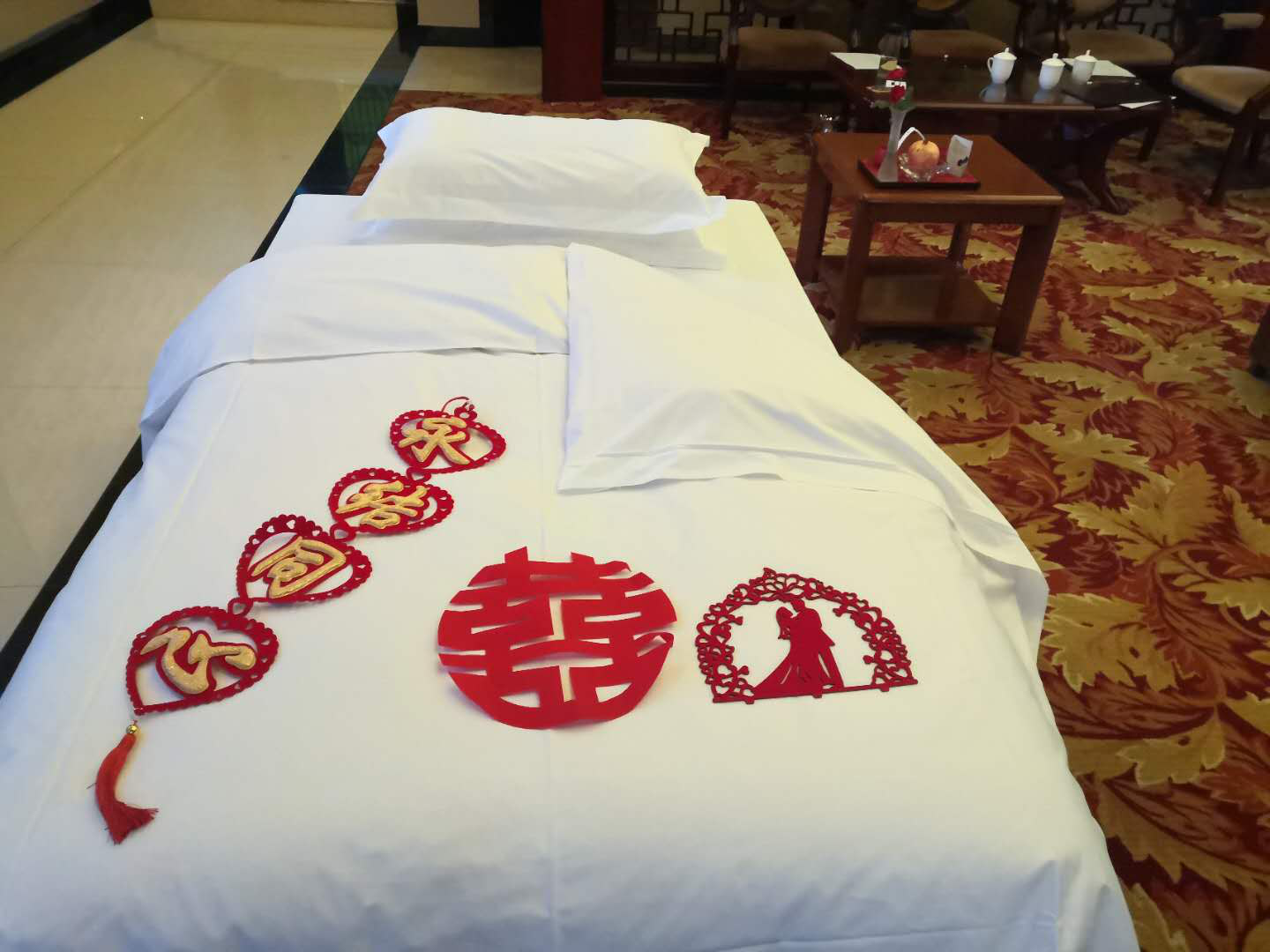 客房部創(chuàng)意鋪床更是令人贊嘆,甩單、包角、套被子動作干凈利落、一步到位,夜床創(chuàng)意更讓人稱贊,“國慶房、中秋房、親婚房”等主題元素唯美突出,給人留下深刻的印象。