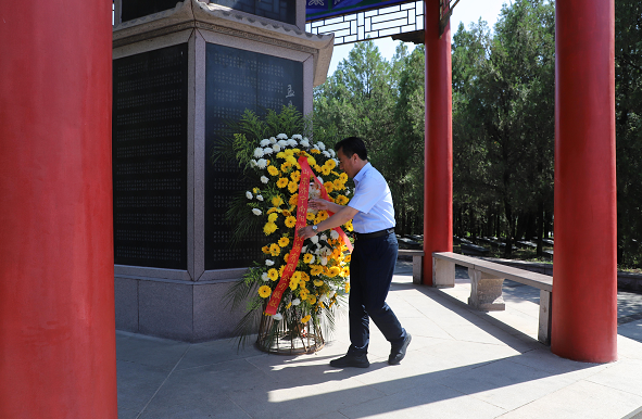 6月4日、6日上午,公司黨員干部從孟良崮戰(zhàn)役的偉大指揮者陳毅元帥、粟裕將軍侍馬而立的塑雕兩側(cè)進(jìn)入紀(jì)念館園區(qū),大家懷著崇敬的心情來到了烈士陵園,那密密麻麻的墓碑無聲的訴說著先烈們?yōu)榱诵轮袊?guó)的誕生所做出的偉大犧牲。大家來到烈士英名碑前向烈士紀(jì)念碑敬獻(xiàn)花籃,緬懷在戰(zhàn)爭(zhēng)中犧牲的革命烈士,并集體重溫了入黨誓詞。